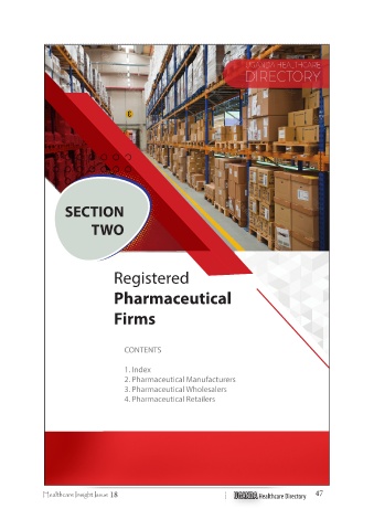 Registered Pharmaceutical Firms CONTENTS 1. Index 2. Pharmaceutical Manufacturers 3. Pharmaceutical Wholesalers 4. Pharmaceutical Retailers Healthcare Insight Issue 18 UGANDA Healthcare Directory 47