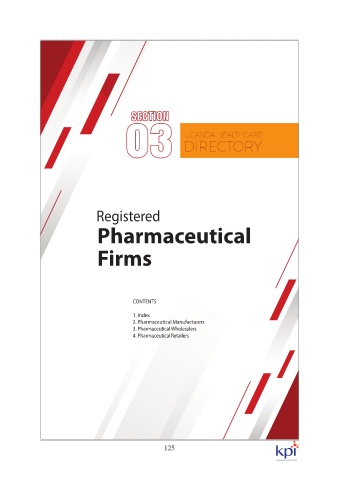 Registered Pharmaceutical Firms CONTENTS 1. Index 2. Pharmaceutical Manufacturers 3. Pharmaceutical Wholesalers 4. Pharmaceutical Retailers 125