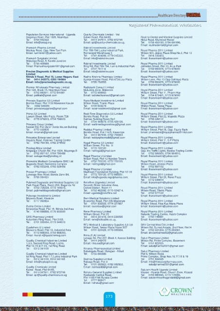 Email: mramah@gmail.com Bombo Road, Plot 114/5, Kawempe Email: pharmacist@royalpharma2011ltd.com