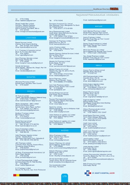 Tel: 0700 163507 Masaka Diocesan Medical Services Limited Tel: 0705 010447, 0783 503069