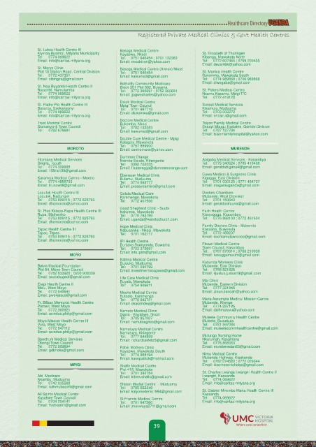 Buyambi, Namutamba Tel: 0772 360691 ; 0752 360691 St. Peters Medical Centre